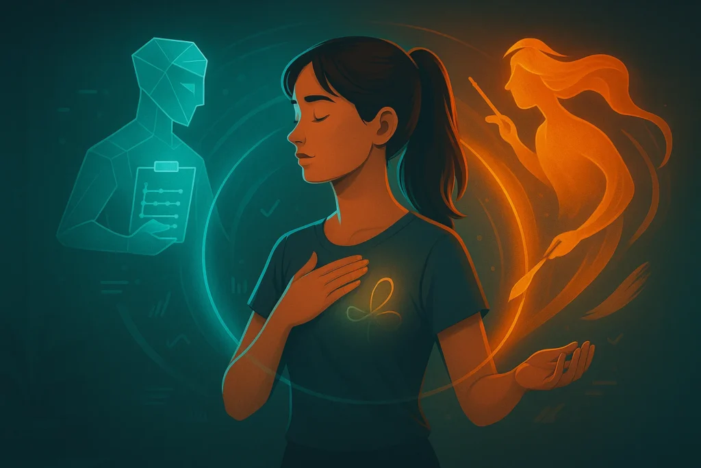 Por ejemplo, cuando tenemos que tomar una decisión importante —como mudarnos, cambiar de trabajo o iniciar un nuevo proyecto—, solemos sentir esa tensión interna: una parte quiere números y garantías, otra busca vibrar con lo que siente correcto. Si solo escuchamos a una, corremos el riesgo de perder el equilibrio: o nos volvemos rígidos y fríos, o nos dispersamos sin dirección.