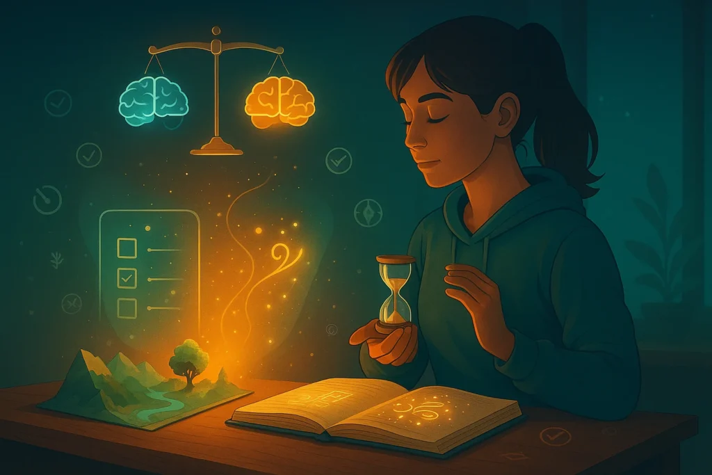 Lo importante no es silenciar a una de esas voces, sino aprender a escucharlas ambas. Porque tu hemisferio izquierdo puede ordenar, pero necesita que el derecho le muestre el sentido. Y tú hemisferio derecho puede intuir, pero necesita que el izquierdo le dé estructura.